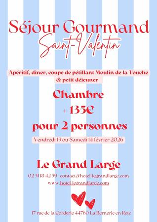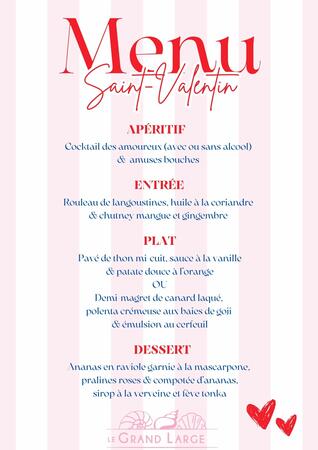 Nuit avec petit déjeuner, Menu St Valentin avec boissons